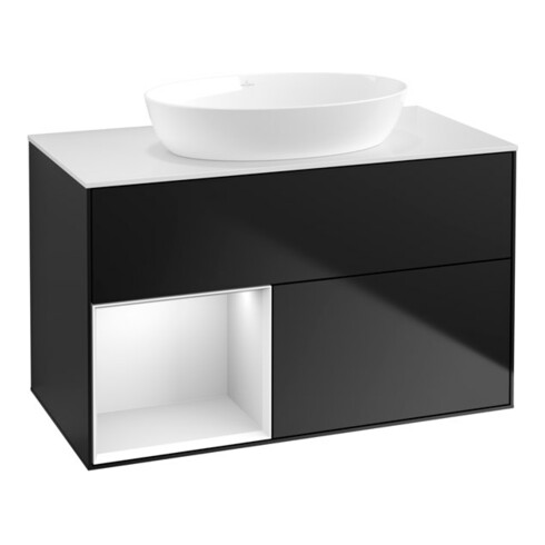 TTCV&B Meuble sous lavabo Finion 100, éclairage mural, blanc mat, tiroir blanc mat, bleu mat