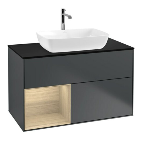 TTCV&B Meuble sous lavabo Finion 100, éclairage mural, bleu pâle, régulateur Oa ven, bleu moyen avec laque