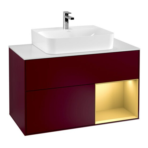 TTCV&B Meuble sous lavabo Finion 100, éclairage mural, plaq. abd. blanc, rég. droite or m, Peo m