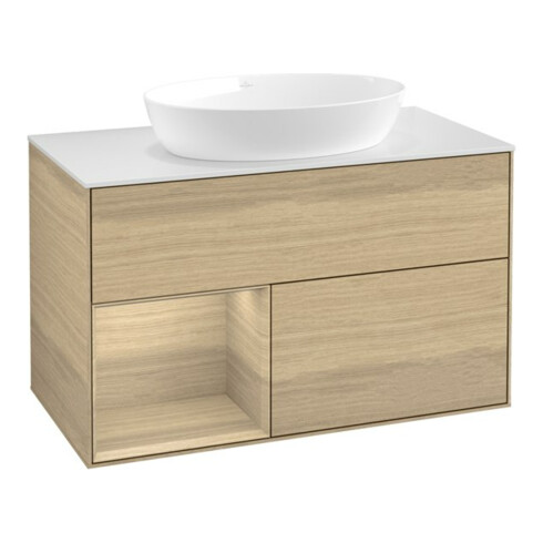 TTCV&B Meuble sous lavabo Finion 100, éclairage mural, plaque d'habillage blanche, régulateur Oa ven, Oa ven