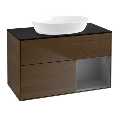 TTCV&B Meuble sous lavabo Finion 100, Pl b m, Rég Anthrac. m Lac, vein. noyer