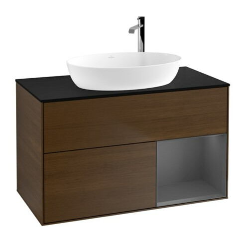 TTCV&B Meuble sous-lavabo Finion 100, Pl b m, Rég Anthrac. m Lac, vein. noyer, éclairage mural