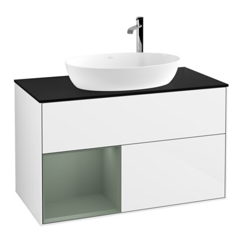TTCV&B Meuble sous lavabo Finion 100, Pl b m, Reg Oli. m Lac, blanc brillant Lac