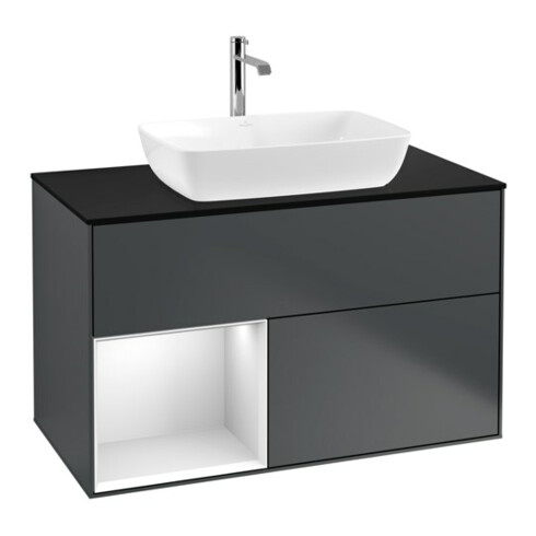TTCV&B Meuble sous lavabo Finion 100, Pl blanc mat, Rég blanc mat laqué, méd. bleu mat laqué