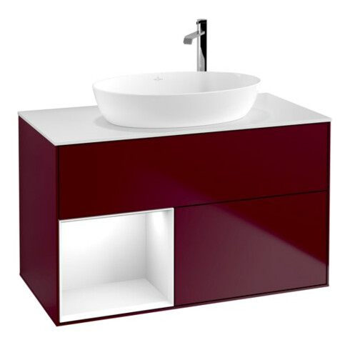 TTCV&B Meuble sous lavabo Finion 100, pl blanc mat, réglette globale blanc laqué, poignée métal