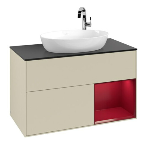 TTCV&B Meuble sous lavabo Finion 100, Pl blanc mat, Réglette Peo mat laqué, gris brillant laqué