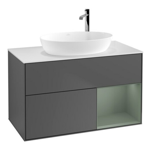 TTCV&B Meuble sous lavabo Finion 100, Pl blanc mat, Régulière, Oliva avec laque, Anthracite mat