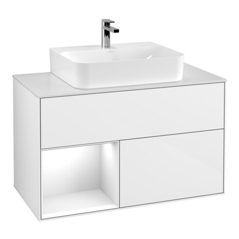 TTCV&B Meuble sous lavabo Finion 100, Pl blanc mat, Rg gris clair blanc laqué, brillant blanc laqué