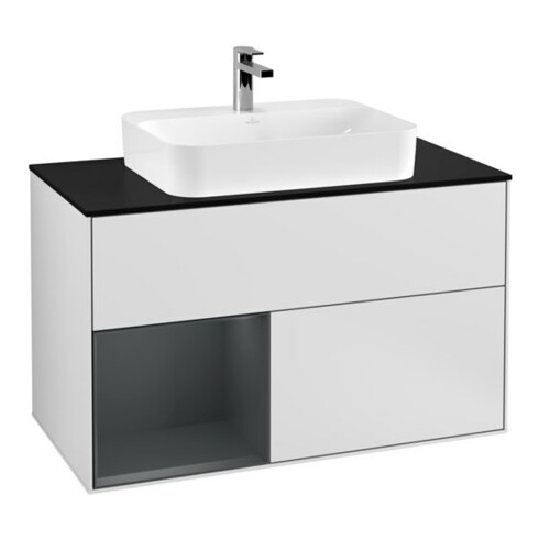 TTCV&B Meuble sous lavabo Finion 100, Pl blanc mat, Rg laqué mat blanc