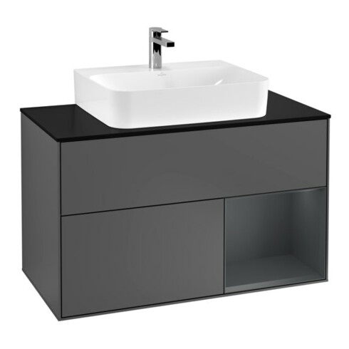 TTCV&B Meuble sous lavabo Finion 100, Pl blanc mat, Rg rouge médium brillant, Anthracite mat