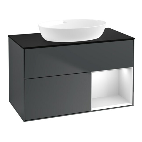 TTCV&B Meuble sous lavabo Finion 100, Pl blanc mat, Tiroir blanc mat laqué, poignée bleue mat laquée