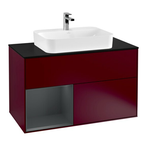 TTCV&B Meuble sous-lavabo Finion 100, Pl blanc mat, tiroir gauche avec blanc mat, poignée métal