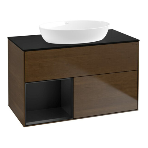 TTCV&B Meuble sous-lavabo Finion 100, Pl bleu m, Étagère bleu m Lac, noyer ven