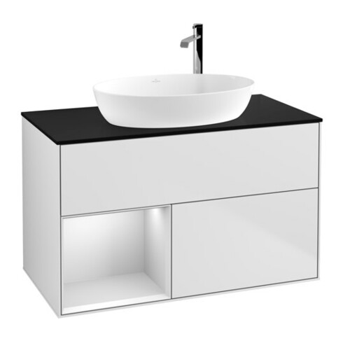 TTCV&B Meuble sous lavabo Finion 100, pl bleu mat, étagère blanc mat laqué