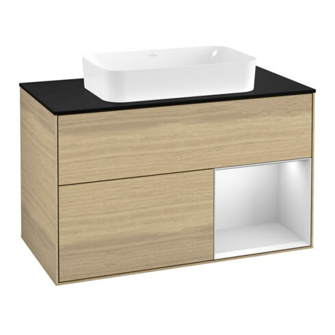 TTCV&B Meuble sous-lavabo Finion 100, Pl bleu mat, Étagère droite blanche laquée, Ven Oa