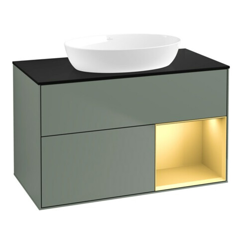 TTCV&B Meuble sous lavabo Finion 100, Pl bleu mat, Ray doré mat Lac, Oli. mat Lac