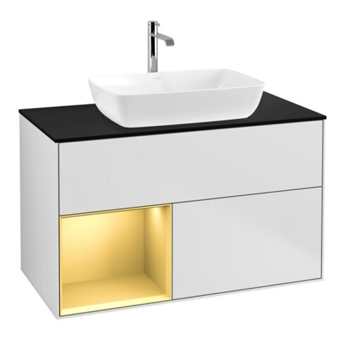 TTCV&B Meuble sous lavabo Finion 100, Pl bleu mat, Reg or mat laqué, blanc mat laqué