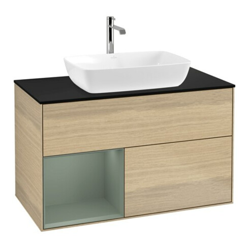 TTCV&B Meuble sous lavabo Finion 100, Pl bleu mat, tiroir huile mat, poignée ven