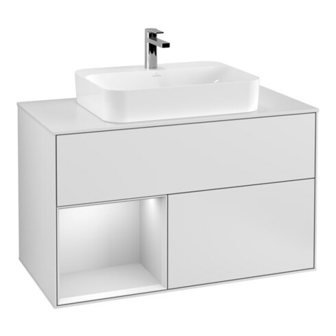 TTCV&B Meuble sous lavabo Finion 100, Pl w m, Étagère gauche, blanc mat laqué