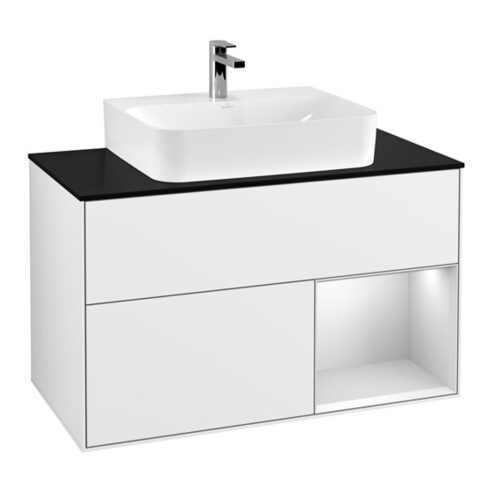 TTCV&B Meuble sous lavabo Finion 100, Pla blanc mat, Arrière rouge blanc mat Lac, brillant blanc Lac