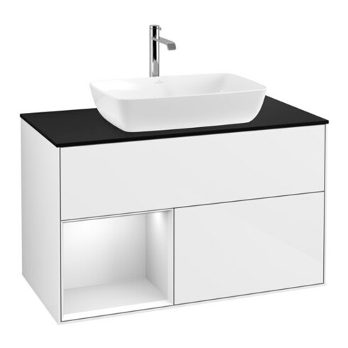 TTCV&B Meuble sous lavabo Finion 100, placage bois m, rayure blanche m, laqué blanc brillant