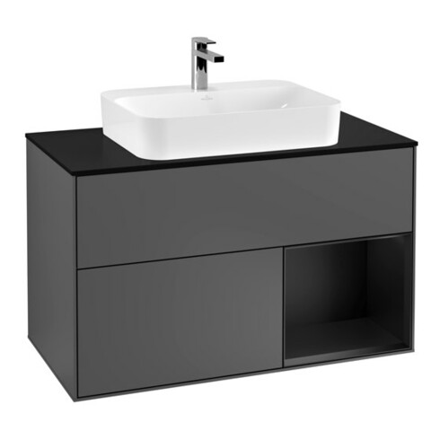 TTCV&B Meuble sous lavabo Finion 100, placage bois, porte battante droite, laqué anthracite mat