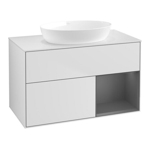 TTCV&B Meuble sous lavabo Finion 100, placage chêne, laqué blanc