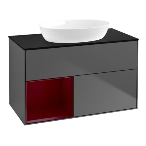 TTCV&B Meuble sous lavabo Finion 100, Plaque bleue, Tiroir Peo en laqué, Anthracite m