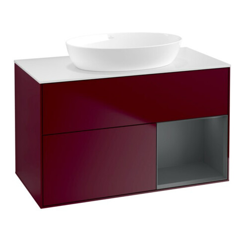 TTCV&B Meuble sous lavabo Finion 100, plaque d'abd. blanc, étagère médiane, laqué, poignée m