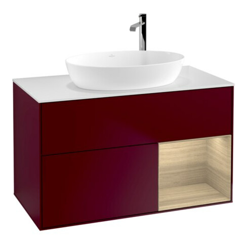 TTCV&B Meuble sous lavabo Finion 100, plaque d'habillage blanche, étagère Oa ven, Peo m
