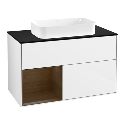 TTCV&B Meuble sous lavabo Finion 100x60,3 cm, éclairage mural, rég. gauche, blanc brillant lacqué