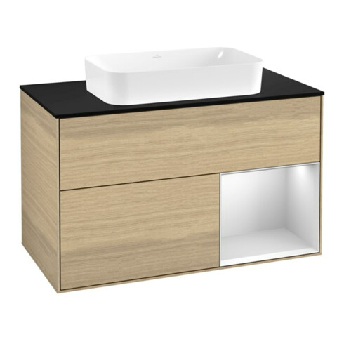 TTCV&B Meuble sous lavabo Finion 100x60,3 cm, tiroir droite blanc mat, placage Oa
