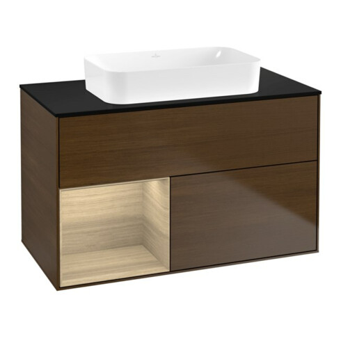 TTCV&B Meuble sous-lavabo Finion 100x60,3 cm, tiroir gauche, placage noyer