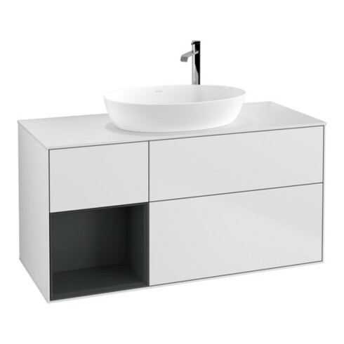 TTCV&B Meuble sous lavabo Finion 120 cm, blanc brillant, avec étagère médiane laquée blanche