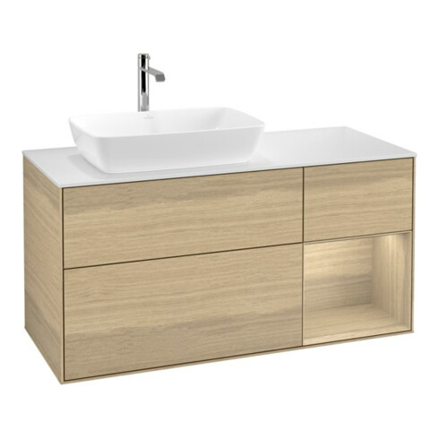 TTCV&B Meuble sous lavabo Finion 120 cm, blanc brillant, éclairage mural, réglette Oaven