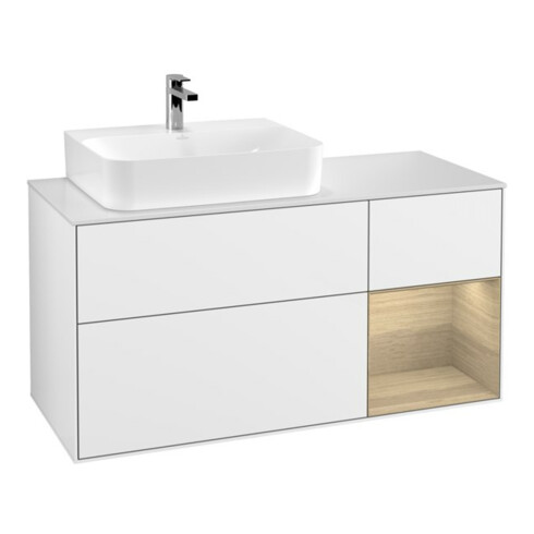 V&B Meuble sous lavabo Finion 120 cm, blanc brillant, porte droite, poignée Oa ven
