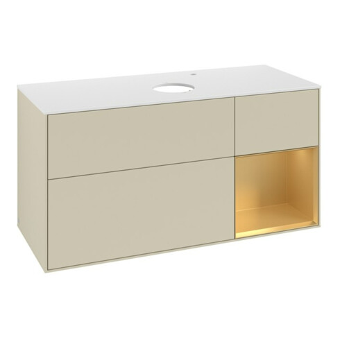 TTCV&B Meuble sous lavabo Finion 120 cm, blanc mat, bord doré mat laqué, poignée gris mat laqué