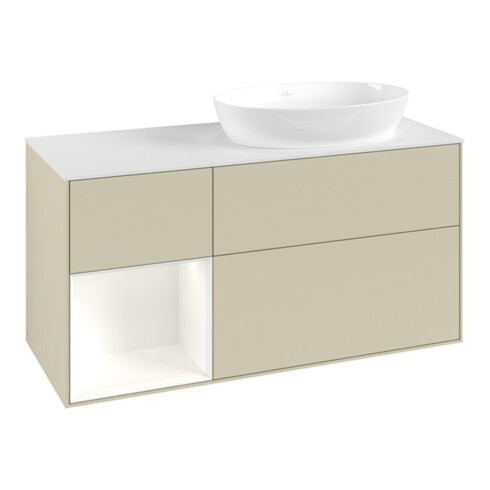 TTCV&B Meuble sous lavabo Finion 120 cm, blanc mat, façade blanche laquée, poignée gris mat laqué