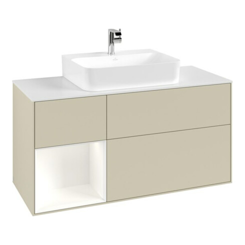 TTCV&B Meuble sous lavabo Finion 120 cm, blanc mat, façade laquée gris clair mat