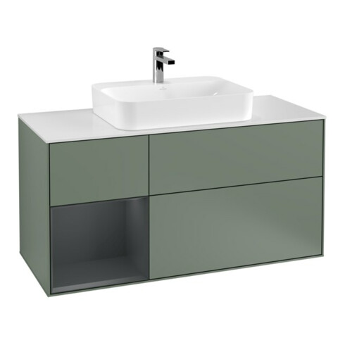 TTCV&B Meuble sous lavabo Finion 120 cm, blanc mat, poignée laiton, olivier mat laqué