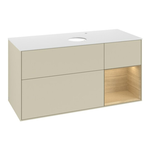 TTCV&B Meuble sous-lavabo Finion 120 cm, blanc mat, porte battante, poignée argent mat laquée
