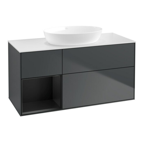 TTCV&B Meuble sous lavabo Finion 120 cm, blanc mat, rangée blanche mat laquée, avec tiroirs mat laqués