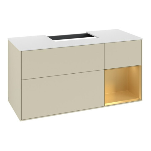 TTCV&B Meuble sous lavabo Finion 120 cm, blanc mat, rangement droit, poignée grise mate laquée