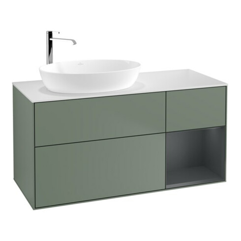 TTCV&B Meuble sous lavabo Finion 120 cm, blanc mat, rangement médium mat laqué, olivier mat laqué