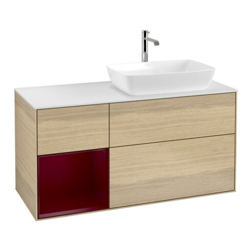 TTCV&B Meuble sous lavabo Finion 120 cm, blanc mat, rangement Peo mat laqué, Oa ven