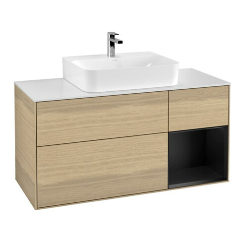 TTCV&B Meuble sous lavabo Finion 120 cm, blanc mat, réglette droite, bleu mat Lac, Oa ven
