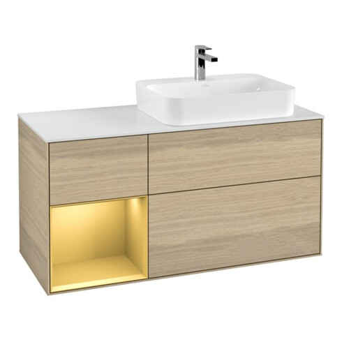 TTCV&B Meuble sous lavabo Finion 120 cm, blanc mat, réglette gauche, luminaire mural, Oa ven