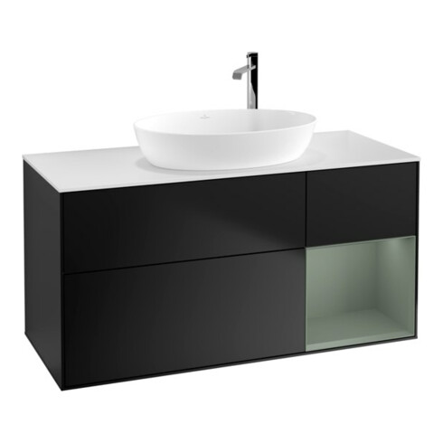 TTCV&B Meuble sous lavabo Finion 120 cm, blanc mat, réglette olivier mat laqué, bleu mat laqué