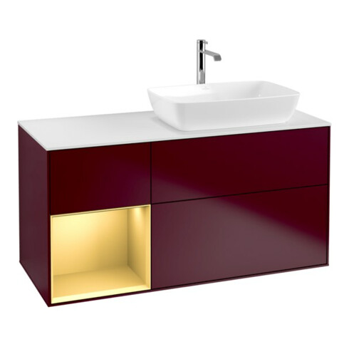 TTCV&B Meuble sous lavabo Finion 120 cm, blanc mat, réglette or mat, poignée métal