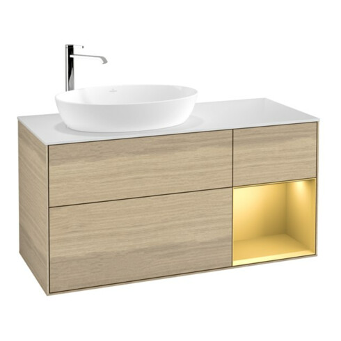 TTCV&B Meuble sous lavabo Finion 120 cm, blanc mat, réglette or mat, venis satin